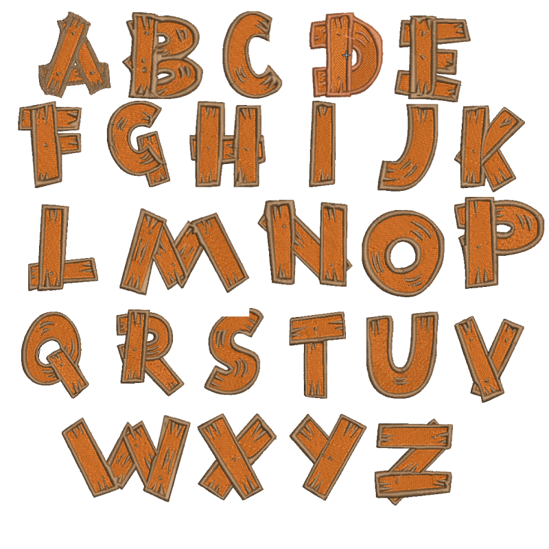 Wooden Alpha Set Machine Embroidery Designs Available in Embroidery Machine Formats EXP Melco, DST Tajima, JEF Janome, Elna, Kenmore, EXP Bernina, PES Brother, Babylock, Deco, PEC Brother, Babylock, Deco, VP3 Husqvarna, Viking, Pfaff, HUS Husqvarna, Vik