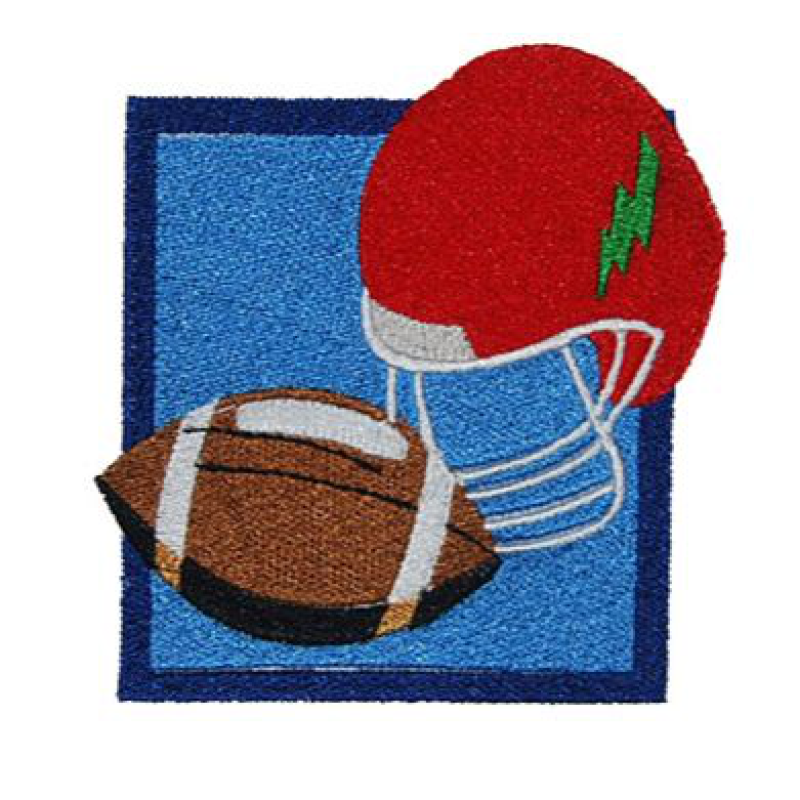 Football Helmet And Ball 01 Available in machine embroidery formats EXP, DST, JEF, EXP, PES, PEC, VP3, HUS, PCS, XXX, CSD. 93.20x99.80 mm; 21,181 stitches 9 thread changes; 9 colors Color Changes 1. Blue 2. Russet Brown 3. Prussian Blue 4. Red 5. Khaki 6.