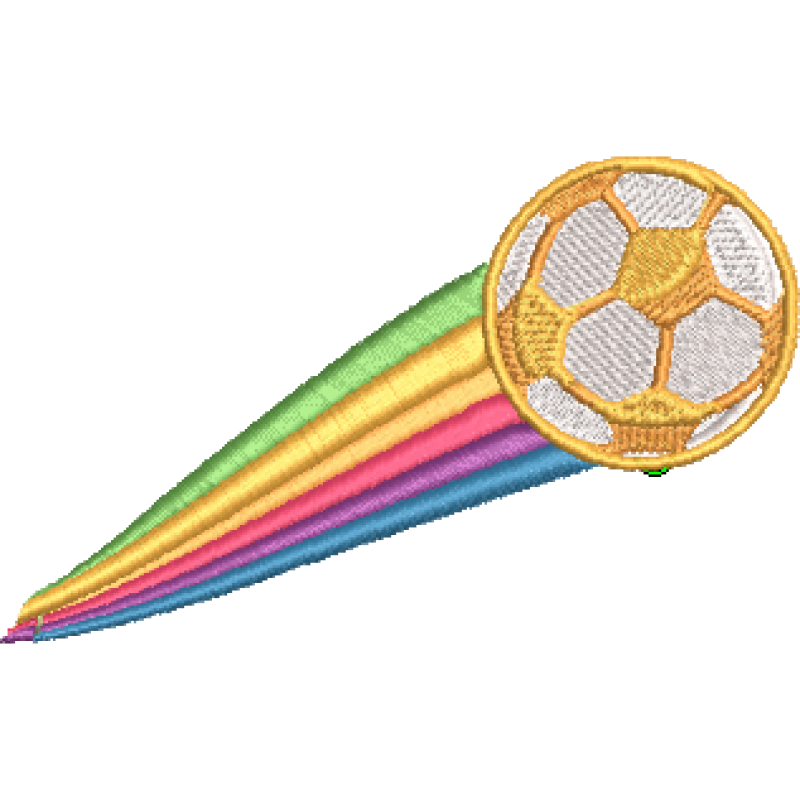 Rainbow Soccer Ball Available in machine embroidery formats EXP, DST, JEF, EXP, PES, PEC, VP3, HUS, PCS, XXX, CSD. 99.00x60.20 mm; 7,996 stitches 7 thread changes; 7 colors Color Changes 1. White 2. Tangerine 3. Carmine 4. Magenta 5. Sky Blue 6. Leaf Gree
