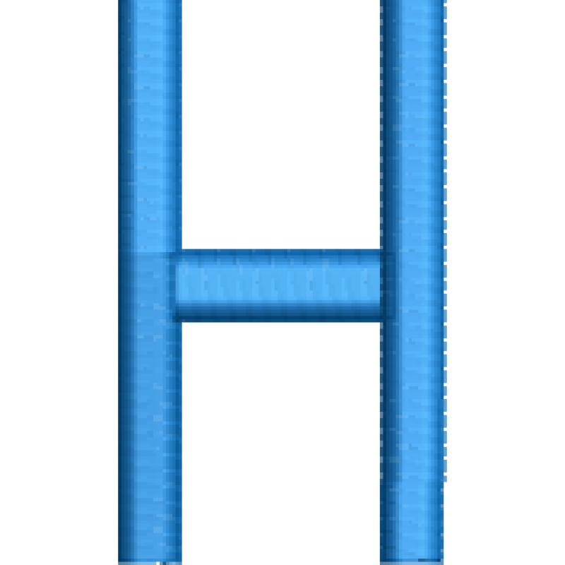 Arty H Available in machine embroidery formats EXP, DST, JEF, EXP, PES, PEC, VP3, HUS, PCS, XXX, CSD. 28.30x49.20 mm; 1,074 stitches 1 thread changes; 1 colors Color Changes 1. Sky Blue