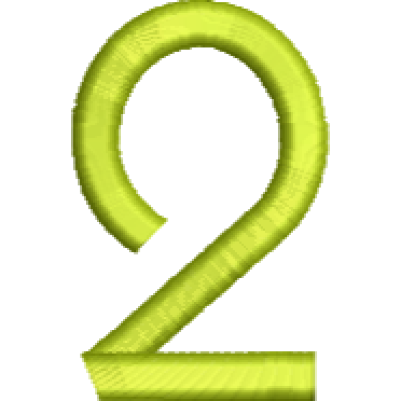Arty Number 2 Available in machine embroidery formats EXP, DST, JEF, EXP, PES, PEC, VP3, HUS, PCS, XXX, CSD. 32.80x51.20 mm; 1,182 stitches 1 thread changes; 1 colors Color Changes 1. Brass