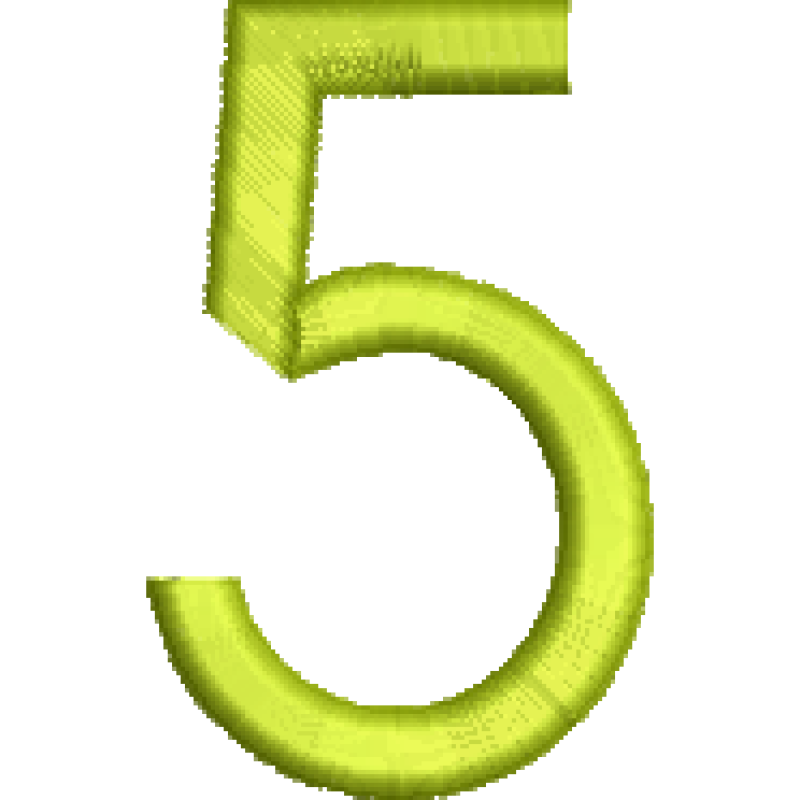 Arty Number 5 Available in machine embroidery formats EXP, DST, JEF, EXP, PES, PEC, VP3, HUS, PCS, XXX, CSD. 32.40x51.30 mm; 1,070 stitches 1 thread changes; 1 colors Color Changes 1. Brass