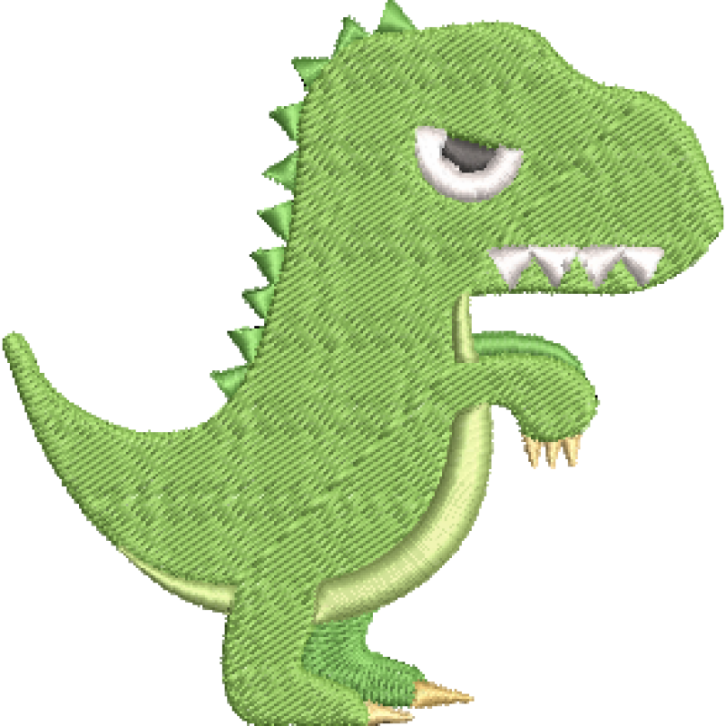 Dinosaur 02 Available in machine embroidery formats EXP, DST, JEF, EXP, PES, PEC, VP3, HUS, PCS, XXX, CSD. 80.20x80.80 mm; 7,213 stitches 7 thread changes; 6 colors Color Changes 1. Leaf Green 2. Cream Yellow 3. Dark Gray 4. Leaf Green 5. Mint Green 6. Fr
