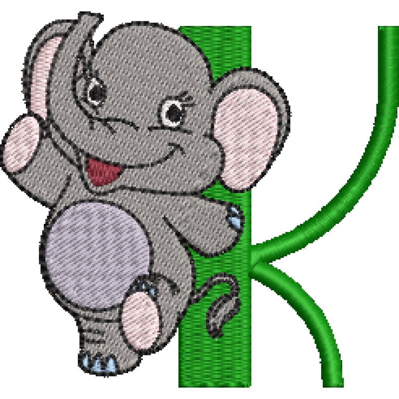 Elephant K Available in machine embroidery formats EXP, DST, JEF, EXP, PES, PEC, VP3, HUS, PCS, XXX, CSD. 76.60x72.40 mm; 10,802 stitches 8 thread changes; 8 colors Color Changes 1. moss green2 2. Gray 3. White 4. Flesh Pink 5. Lavender 6. Silver 7. red2