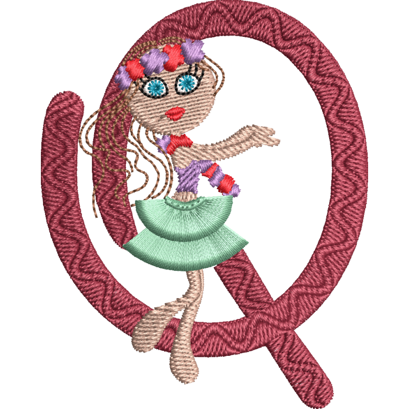Tags: Hula Girl Fringe Skirt Q, letter Q embroidery design, 4x4 hoop embroidery, machine embroidery alphabet, PES embroidery design, monogram embroidery file, instant download embroidery, embroidery font design, custom name embroidery