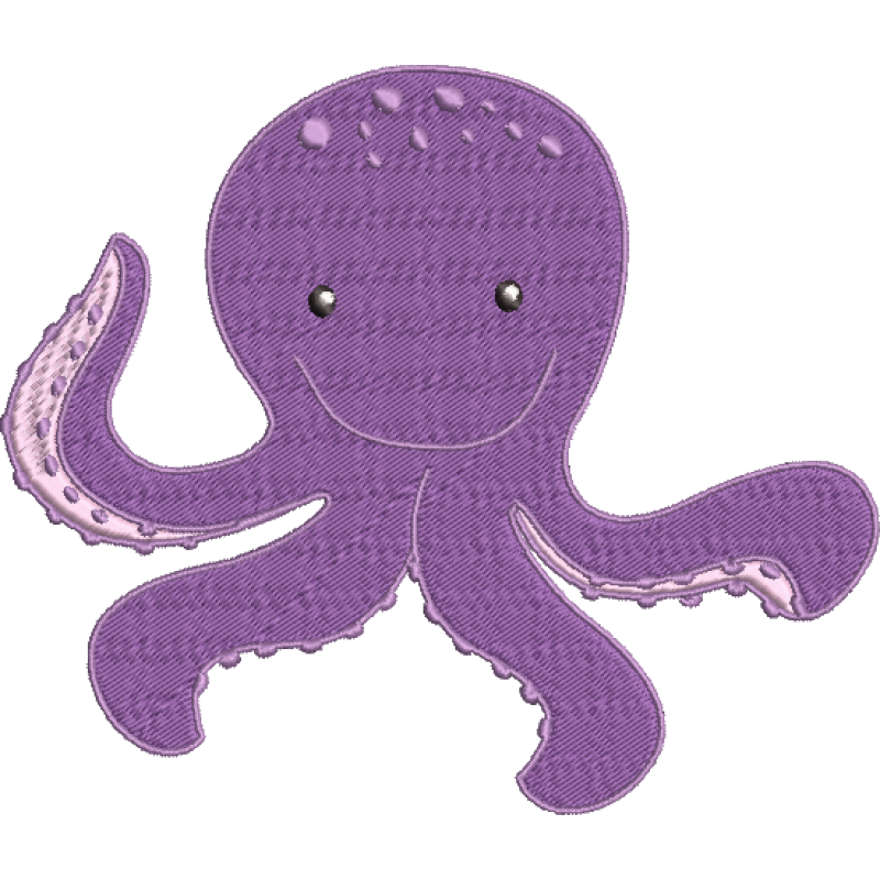Octopus Available in EXP, DST, JEF, EXP, PES, PEC, VP3, HUS, PCS, XXX, CSD. 99.40x84.50 mm; 12,662 stitches 5 thread changes; 5 colors Color Changes 1. Warm Gray 2. Lilac 3. Silver 4. Olive Green 5. White