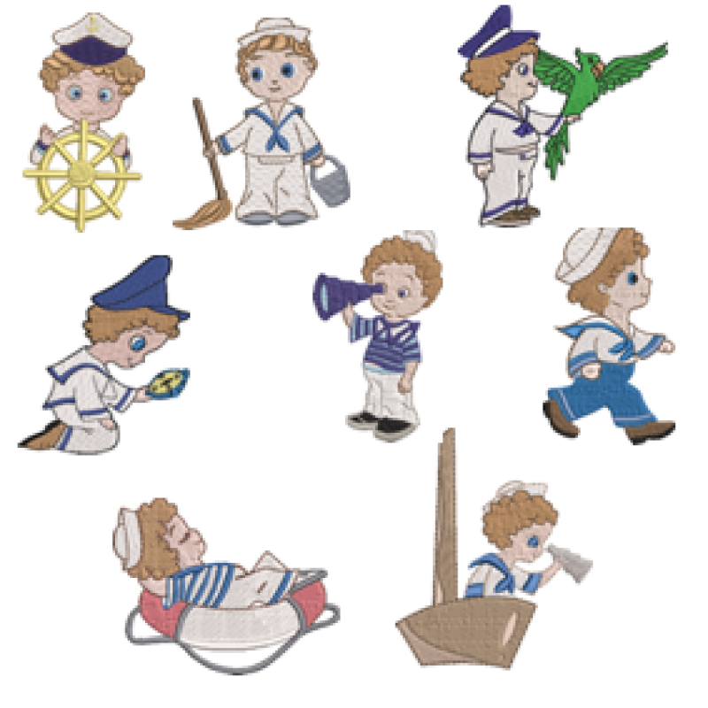 Sailor Boy Set Machine Embroidery Designs Available in Embroidery Machine Formats EXP Melco, DST Tajima, JEF Janome, Elna, Kenmore, EXP Bernina, PES Brother, Babylock, Deco, PEC Brother, Babylock, Deco, VP3 Husqvarna, Viking, Pfaff, HUS Husqvarna, Vikin