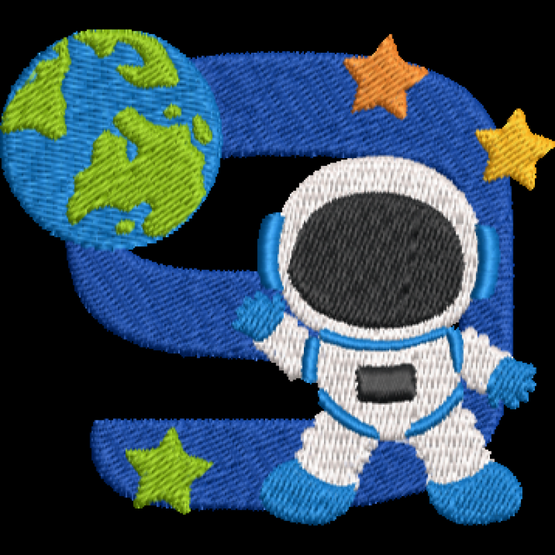 Space 9 Available in machine embroidery formats EXP, DST, JEF, EXP, PES, PEC, VP3, HUS, PCS, XXX, CSD. 75.70x67.60 mm; 12,345 stitches 8 thread changes; 7 colors Color Changes 1. Ultramarine 2. White 3. Olive Green 4. Sky Blue 5. Lime Green 6. Tangerine 7