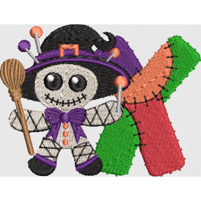Voodoo Doll X will fit in a 100mm x 100mm (4" x 4") hoop. Available in Machine Embroidery Formats EMB, EXP, DST, JEF, EXP, PES, PEC, VP3, HUS, PCS, XXX, CSD. width 93.1 mm x height 70.4 mm Colour Changes 9 Stitch Count 14986 width 3 5/8 " height x